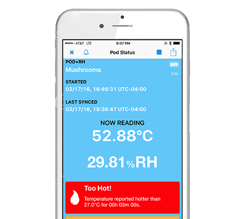 Read temperatures on your mobile phone or tablet. App displays current and minimum and maximum values as well as alarming if threshold is exceeded. Data saved on device or in the Verigo cloud. Data easily shared via email to anyone.
