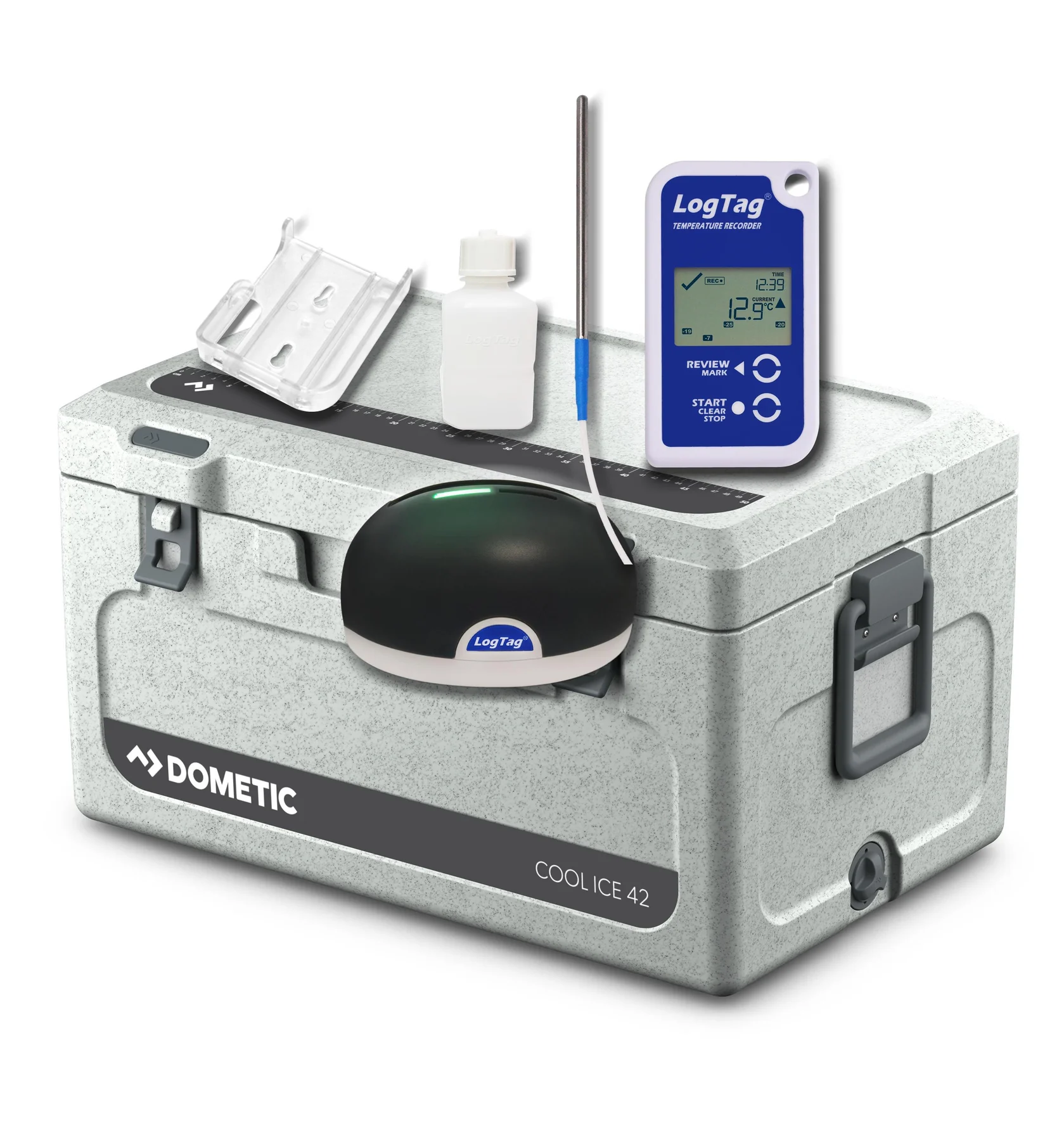 System supplied with LogTag datalogger mounted on chill box lid with temperature probe fitted through lid and glycol bottle attached. Please note: cool glycol bottle in fridge to approx 5C for 2 hours prior to starting LogTag and transferring vaccines to chill box.
