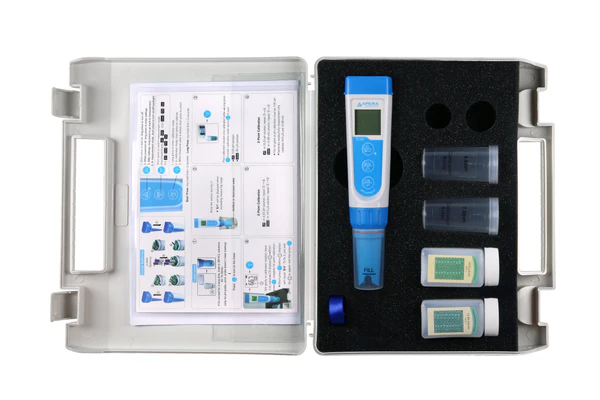 - Complete kit with ready-to-use calibration solutions, calibration bottles, AAA batteries, and a lanyard all in a portable carrying case