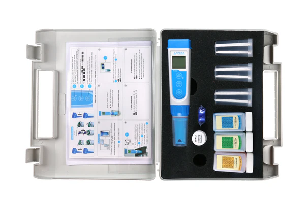 - Complete kit with ready-to-use calibration solutions, calibration bottles, storage solutions, AAA batteries, and a lanyard all in a premium portable carrying case