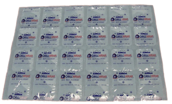 Chill Wrap™ Ice Replacement (or gel ice or slicka pad or coolant) keeps products chilled and fresh. Used with fish, meat, poultry, shellfish, crustacea, vegetables, herbs, sera and medical samples, Chill Wrap™ ice replacement helps ensure fresh delivery of chilled or live products.