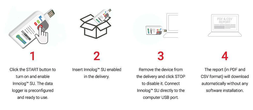 INNOLog PRO temperature loggers were especially developed for monitoring temperature-sensitive products throughout the entire cold chain. We incorporate customer-specific settings directly ex-works so that each temperature logger is good to go out of the box. Digital sensors measure the temperature with high accuracy, together with long battery life and intuitive LED indication of the status makes our INNOLog PRO a worldwide standard in logistics and storage.