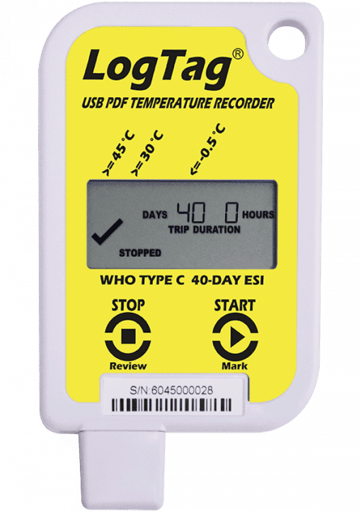 - Stores 40 days of temperature recordings data, factory set with a 5 minute logging interval