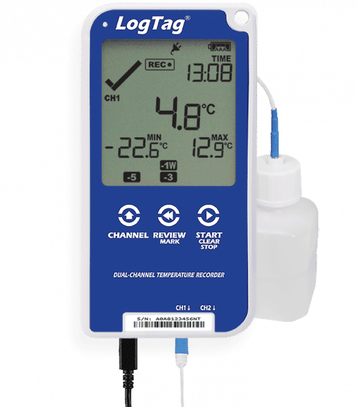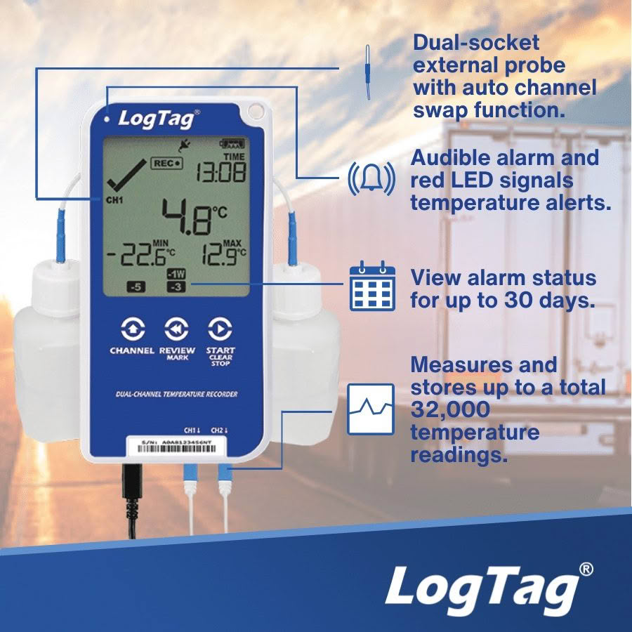 - Audible alarm & red LED signals a temperature alarm.